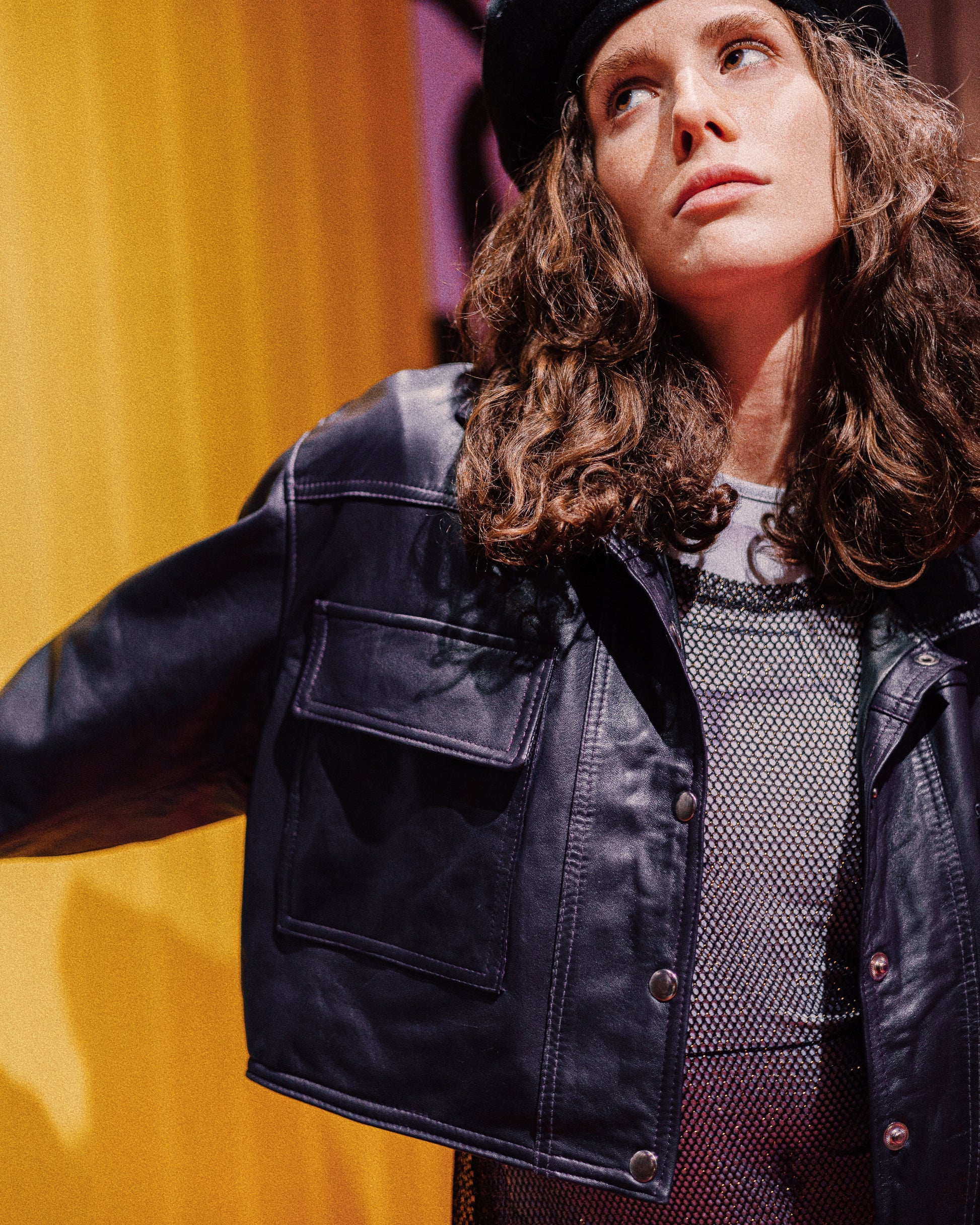 Куртка створена методом апсайкл з одного використаного шкіряного виробу.